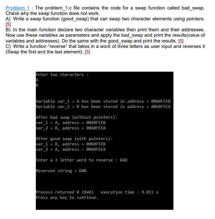 Solved Include Void Bad Swap Char Char Int Main C Chegg Com